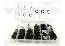 Plastic case containing 300pc e clip assortment. Sizes ranging from 1.6mm to 22.2mm.